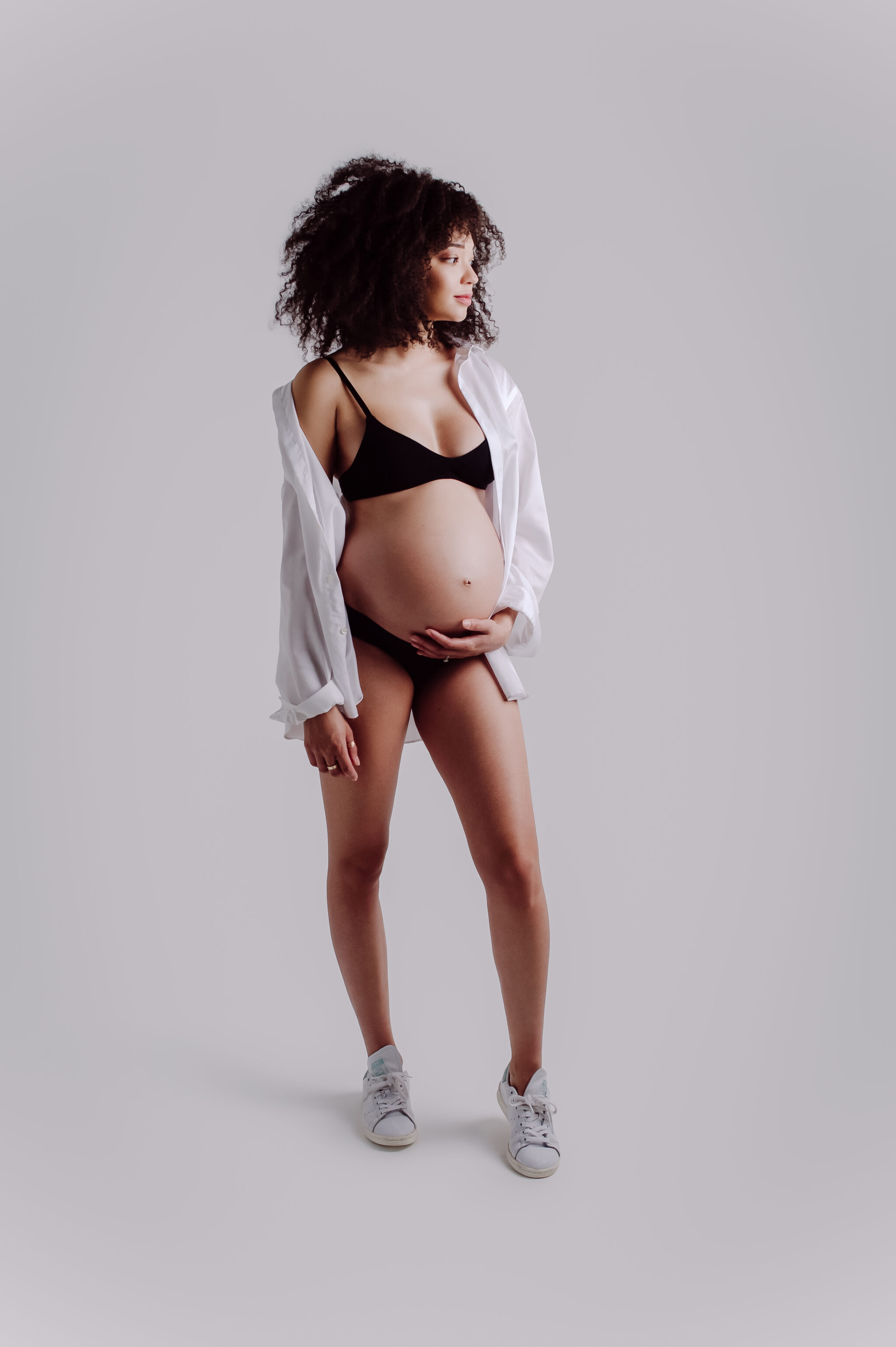Parmi les plus notoires : des cheveux incroyablement denses (aucune chute pendant 9 mois, ça aide), un visage bouffi sur la fin (avec option « gros glouglou » sous le menton et plis très marqués dans le cou), une poitrine qui a triplé de volume (c’était cool ça !), des bras et des doigts qui ont gonflé du jour au lendemain (au point que je doive aller faire couper mon alliance et ma bague de fiançailles en urgence chez le bijoutier), un ventre resté discret jusqu’au 5 mois… et qui a finalement « explosé » au cours des dernières semaines (avec quelques minis vergetures cadeaux sur le bas ventre) et, enfin, beaucoup de cellulite dans les cuisses et fesses (je n’en avais jamais eue auparavant, elle est apparu, étonnamment, après l’accouchement). Ah, et j’oubliais les petits vaisseaux pétés ça et là, notamment sur les jambes (sachant que j’avais déjà quelques varicosités).