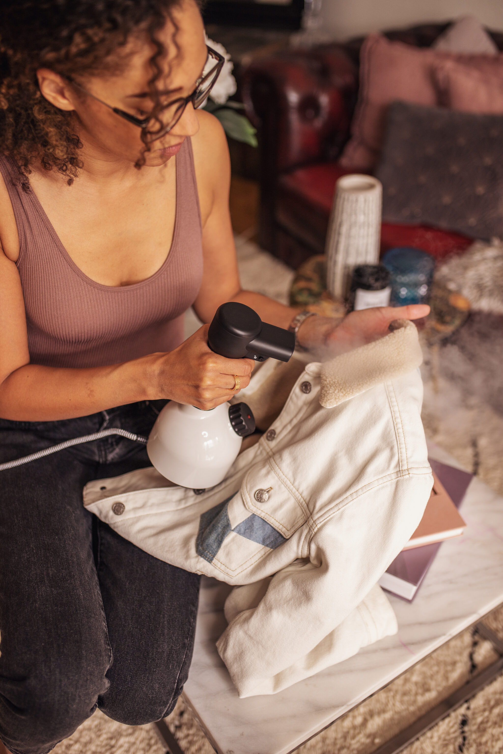 Je vous explique : après avoir porté mon pull, un coup de vapeur haute pression l’assainit en un éclair… et le repulpe aussi (vous savez, en redonnant l’aspect fluffy du pull neuf, dont on raffole toutes… mais qui disparaît toujours après le premier lavage LOL !). Les fibres de mes lainages restent au top, belles et douces comme au premier jour. Vraiment un petit luxe à mes yeux cette impression de porter un nouveau pull à chaque fois.