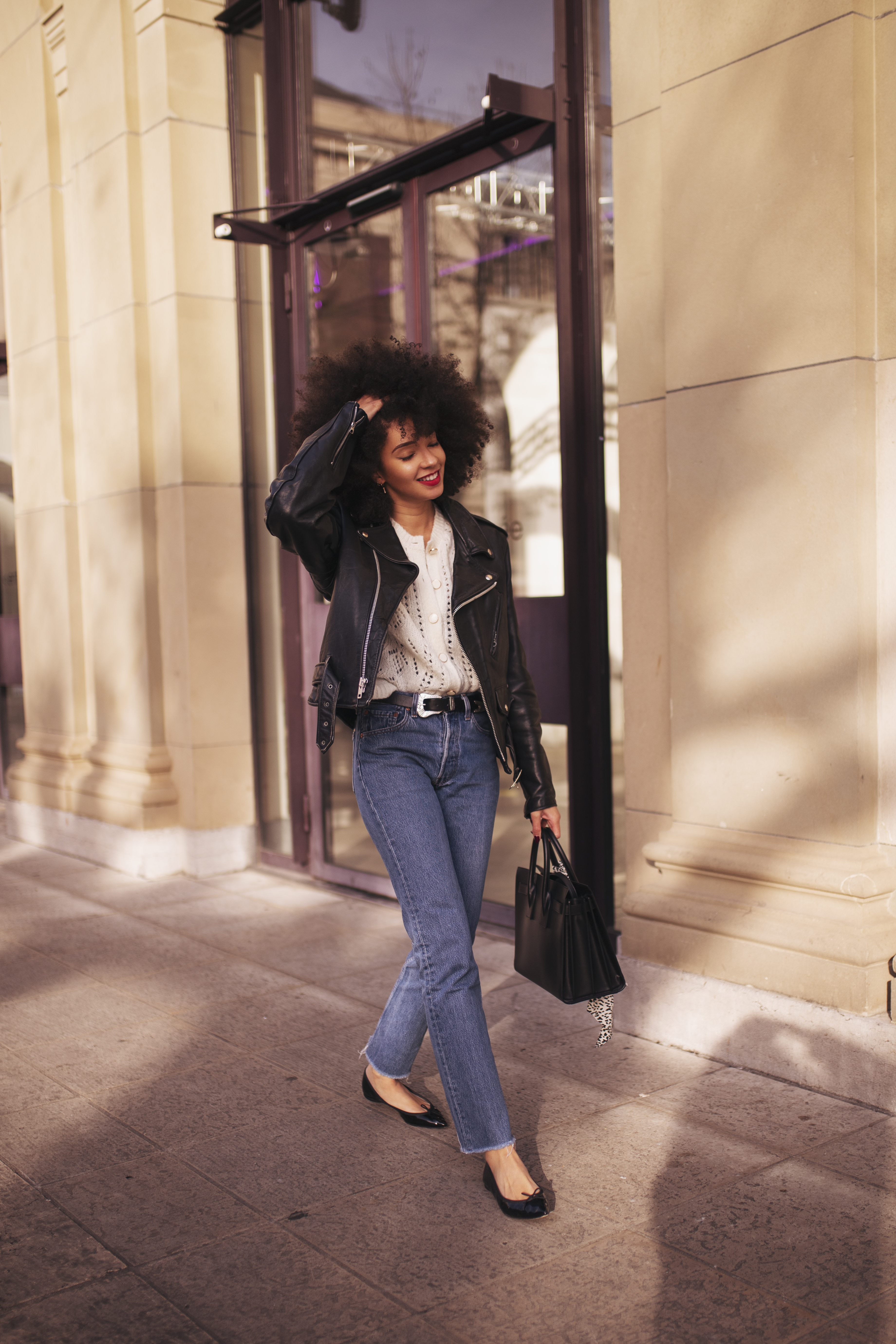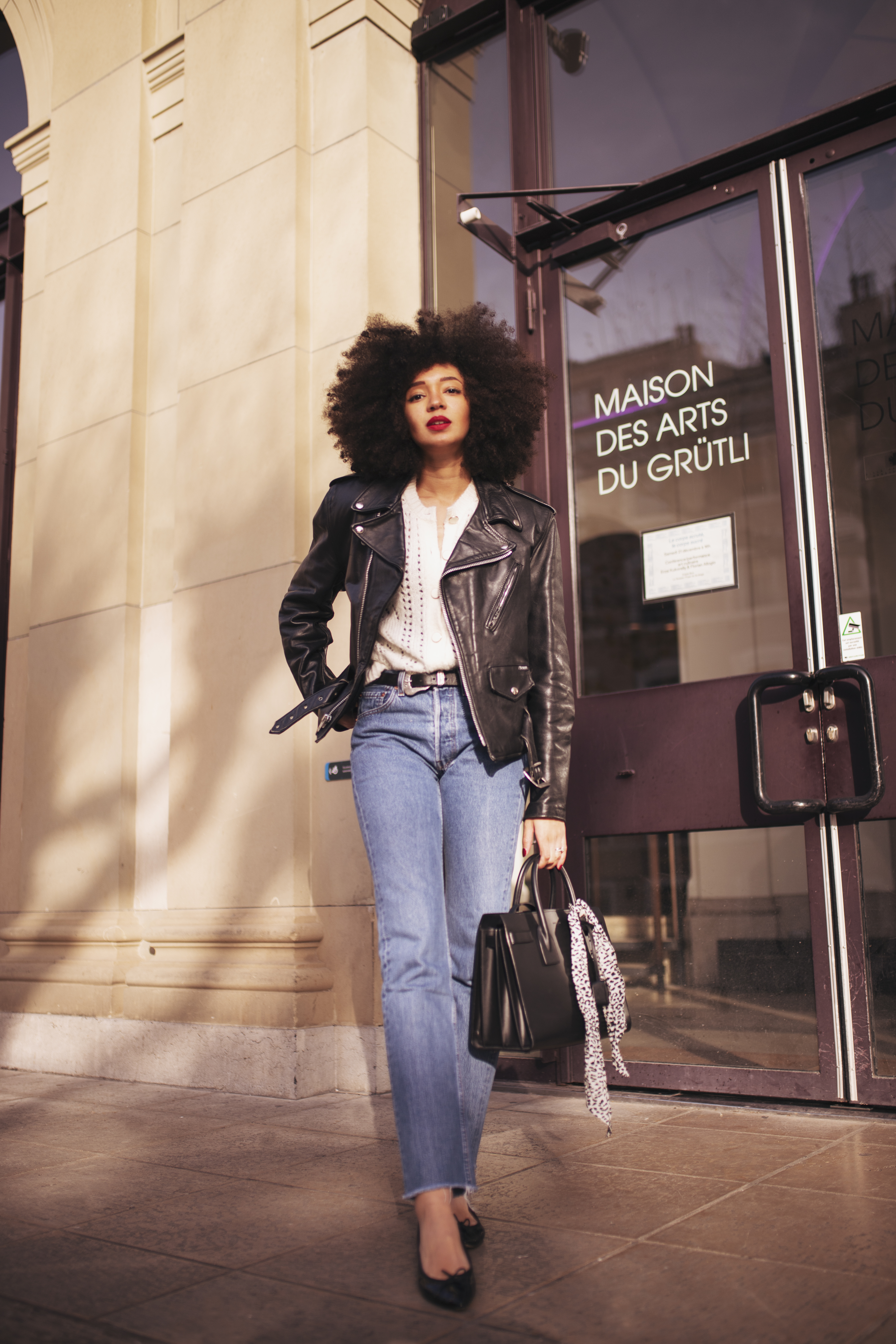Bref, moi qui m’étais jurée de ne plus jamais racheter de perfecto depuis mon acquisition du Balenciaga, je dois dire que « le perfecto de Papa » apporte une jolie touche masculine – androgyne et un poil nostalgique qui se marie très bien avec mes looks d’aujourd’hui ! La preuve que certaines pièces ne vieillissent jamais vraiment…